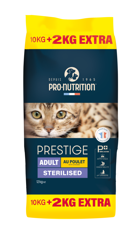 Pro-Nutrition Prestige Adult Sterilised с пиле - Пълноценна храна за пораснали кастрирани котки и/или склонни към напълняване, 10 +2 кг.